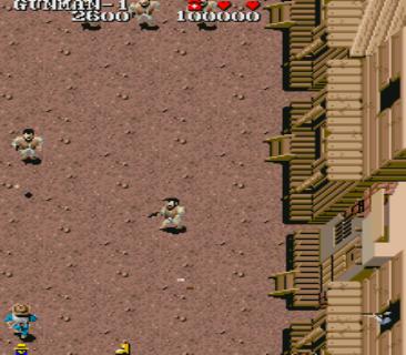 A western shoot-em-up where you play a lone sheriff out to arrest some of the most dangerous criminals in the Wild West. Shoot your way past the common robbers and thieves to reach the wanted criminal(s) at the end of the stage. Defeat him/them to collect the bounty and move on to the next stage. Controls for this game are slightly unusual with three fire buttons which can be pressed simultaneously for multi-directional fire.