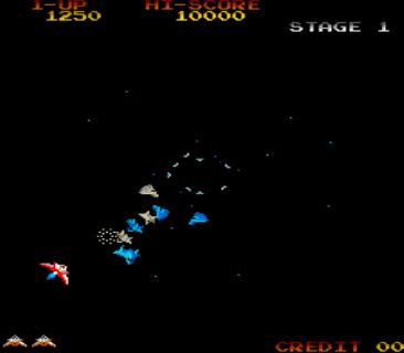 A unique shoot em up that plays similar to Galaga or Galaxian, but you are never backed into an imaginary wall due to the screen edges. Some gamers have jokingly called it "Galaga meets Tempest". You pilot your ship around the outside edge of the screen and shoot at your enemies toward the middle. This makes more sense since it gives more of a pseudo 3-D view. Defeat wave after wave of enemies to make your way toward Earth.