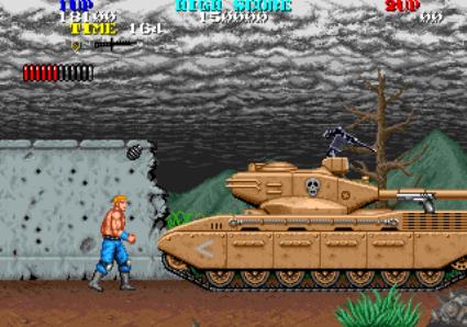 A side-scrolling, two-player, soldiers-n-enemies shoot-em-up with lots of weapons, vehicles, and at least one air combat sub-game.