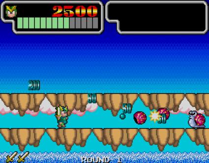 The third in the series where the player controls a green-haired boy hero named Leo (player 1) or a pink-haired girl hero named Princess Purapril (Priscilla in the English language versions, player 2) who must attack the invaders that attempt to collect weapons and use them to destroy the land. The gameplay consists of action and shooter scenes. The game starts out as a simple platform game, and later on the game is transformed into a shoot 'em up.