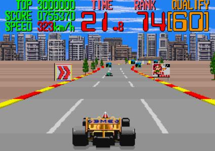 Drive a Formula 1 race car on courses in eight different countries. Player must finish the race (one lap) with a certain minimum ranking to proceed to the next course. If the player does not finish a race he may add a credit and try again on the same course, keeping his existing ranking, but the last course, Japan, can be run only once and then the game is over.