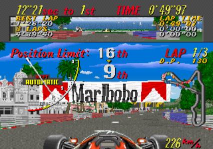 Your score is indicated on screen by "D.P." - driver points, under the LAP counter.