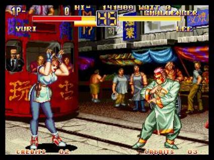 The sequel to the original "Art of Fighting". Players now have many characters to choose from compared to the original. Controls remain unchanged. You have a heath bar and a spirit bar. Use the spirit bar to perform special moves, but you must recharge this bar in order for the special moves to remain effective. You can also still taunt the enemy which hurts the other player's spirit bar. A hidden boss from another popular SNK fighting game is in this game if you perform something special.