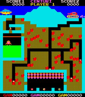 You play a small player sent by saucer to dig under the mountain where many gems are available for you to collect. Avoid the spikes, boulders, enemy players, and the pit where a monster resides. Do all this and get back to the saucer before the tank shoots through the mountain that separates the tank and your saucer.