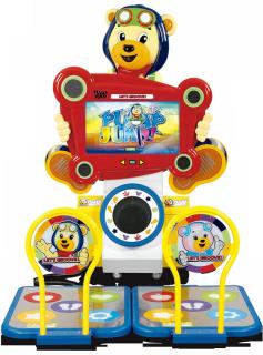 This version of the popular Pump it Up series is geared toward a younger player. This version features simpler controls, a smaller footprint, and more child-friendly music. The cabinet is also geared to appeal to younger gamers.