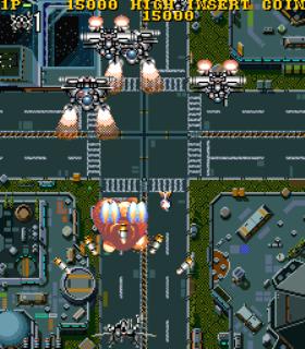 A fairly typical vertical-scrolling shooter that is based upon the Japanese animation series 'Super Dimensional Fortress Macross'. The game can be set in English or Japanese modes by means of a dipswitch.