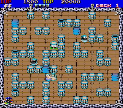 A sailor must attempt to grab barrels and push them to knock out the pirates. This was a Japan-only release.