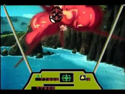 A laserdisc game where you pilot a helicopter through a predetermined path trying to take out the enemy targets with your weapons. The game features actual game graphics (gun sights, score display, and armor status) overlapped with the laserdisc background.