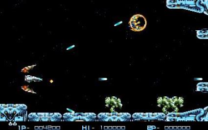 Taking place in the year 2191, the player pilots a recently developed space fighter, the SR-91, through six stages to defend the Earth from a two-year-long alien invasion. The SR-91 uses the VAWS (Variable Armor and Weapon System) which uses the Optica Weapon Arms. The Arms shield the ship from top and bottom attacks, provides back-up fire and using its Arm System can be positioned to fire in various angles depending on the current weapon. Overall, this system functions somewhat like the tentacle equipment in X Multiply, another Irem game with ties to R-Type. The SR-91 uses one of three different pick-up weapons: the red "Taikuu Laser", thin red beams that fire straight forward; the yellow "Ring Laser", yellow rings which can be aimed in all directions and provide good coverage; and the blue "Hansha Ball", blue spheres that can be also aimed in all directions and bounce off the walls.