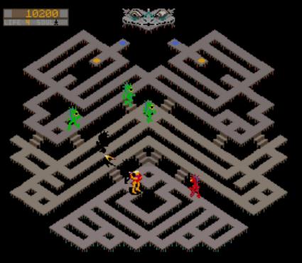 A maze/shooting 'em up game with a maze layout similar to Crystal Castle. You walk around a 3-Point Perspective maze with 4 directions to shoot your enemies. When you shoot the enemies, a dark soul is released and runs away to the monsters mouth. You must touch the enemies soul before it gets to the mouth or a regernerated more difficulty enemies occurs.