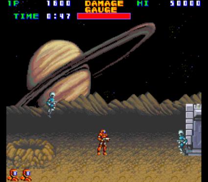 Each planet is played with right horizontal and vertical scrolling, shooting