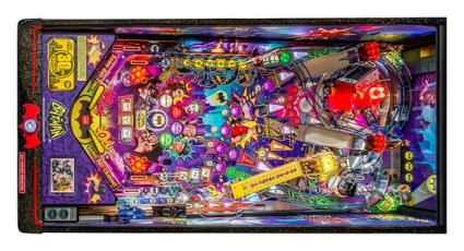 In addition to the fun title and game experience, the machine features a full color high definition display replacing the dot matrix display. In conjunction with Stern’s new SPIKE-2 electronic pinball platform, the display enables high definition graphics and innovative animations. This enables the game to feature actual TV footage from the iconic series. The game includes a second high definition display on the playfield as part of an interactive game feature.