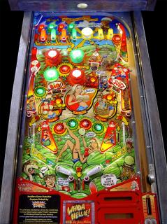 Whoa Nellie! Big Juicy MelonsTM pinball takes players on a journey through the Mellon Family farm renowned for abundant produce. Players score points on the farm operated by the lovely Melony Mellon and her twin sisters while avoiding the wrath of their over-protective shotgun-wielding father. The colorful easy-to-learn game features a fun classically styled pinball playfield tuned for a balance of randomness and skilled shooting challenges. The game rewards players of all skill levels.