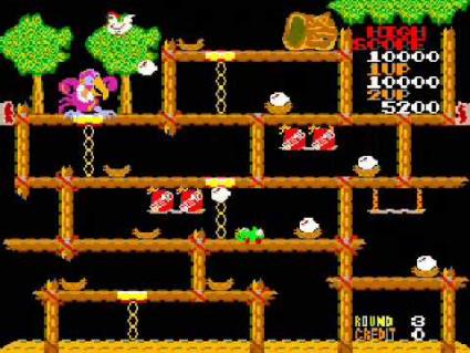 If the nesting eggs are left for too long, they will hatch into a baby chick. The player can eat the chick for bonus points, but if the chick is left alone for too long, it will grow into an adult chicken and start attacking the player.