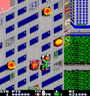This game is very similar to Crazy Climber. As your firefighter climbs the building, he must use his fire extinguisher to put out the fires which include burning papers, flaming windows and shooting fireballs. The fire extinguisher contains a limited amount of water, so you will have to use it wisely.
