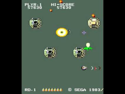 Players control a tank, capable of moving in eight directions. One button fires forward, while another launches bombs further up the screen. The play area continuously scrolls upwards and players need to avoid enemies and obstacles.